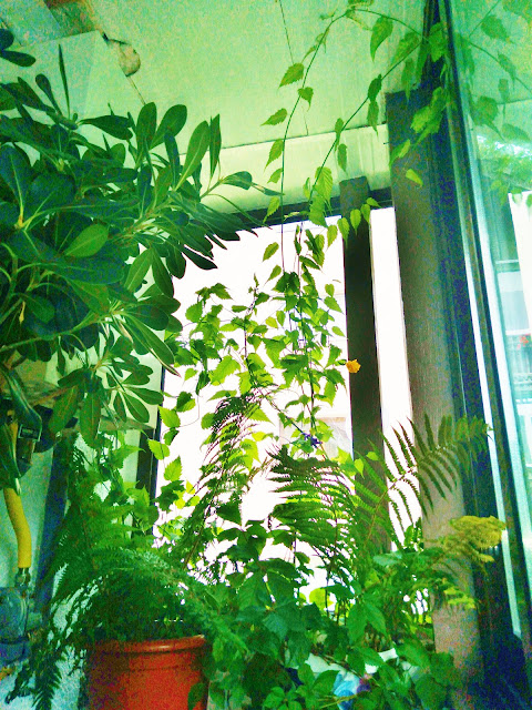 Nu sunt toate florile pe care le are, ci doar o parte in ele, cele pe care Jeni, sora mea, a apucat sa le fotografieze si sa mi le trimita pe la sfarsitul lui iulie. Sunt din cele doua balcoane de la etajul patru al unui bloc din centrul Bucurestiului, dar si cele din curtea interioara a blocului.